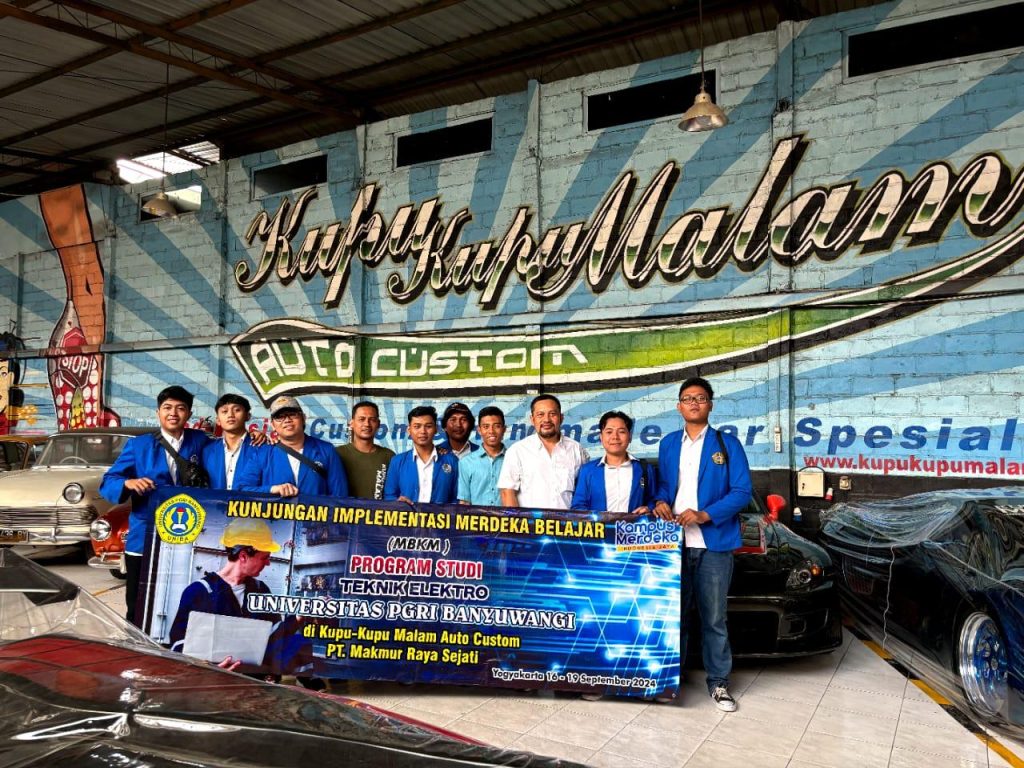 Mahasiswa Program Studi Teknik Elektro Universitas PGRI Banyuwangi melaksanakan Kunjungan Implementasi Merdeka Belajar (MBKM) ke bengkel legendaris, Kupu-Kupu Malam Auto Custom – PT. Makmur Raya Sejati di Yogyakarta.
